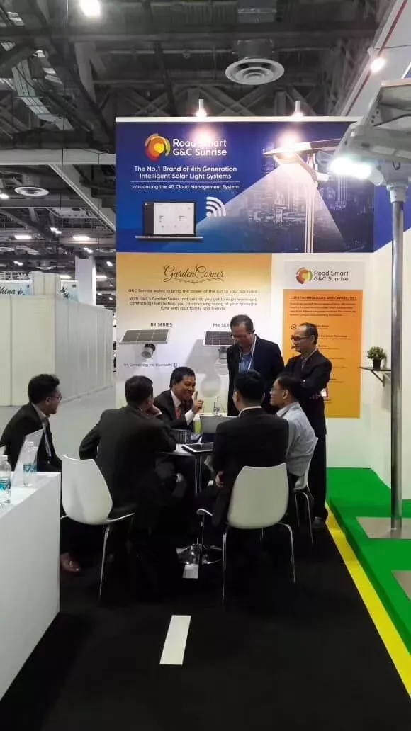此次展會源碼亮相了月光燈、夜鷹燈、飛鶴燈、揚帆燈、春繭燈、駿馬燈等系列智慧產品,產品的超高光效、優美造型和團隊的優質服務驚艷全場。吸引了新加坡、馬來西亞、沙特阿拉伯、菲律賓等世界眾多太陽能路燈行業的承包商、經銷商前來駐足與垂詢,他們紛紛對源碼的產品表示高度認可。其中物聯網駿馬燈最受歡迎,我們運用iPad展示產品,通過iPad對燈進行開關,調亮度,查看路燈參數等操作,獲得大家的高度贊賞,他們高度評價這個技術,非常具有吸引力。