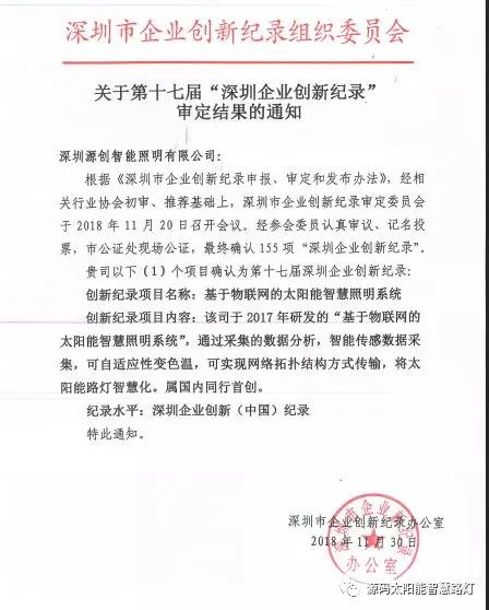 其中深圳源創(chuàng)智能照明有限公司(以下簡稱“源碼太陽能路燈”),憑借在太陽能路燈創(chuàng)新技術(shù)的突出優(yōu)勢(shì)獲得“深圳企業(yè)創(chuàng)新(中國)紀(jì)錄”獎(jiǎng)。該記錄將物聯(lián)網(wǎng)技術(shù)運(yùn)用于太陽能路燈,有效地解決路燈的管理、維護(hù)問題,賦予太陽能路燈”智慧“屬性,在行業(yè)內(nèi)屬領(lǐng)先水平,屬國內(nèi)同行首創(chuàng)。