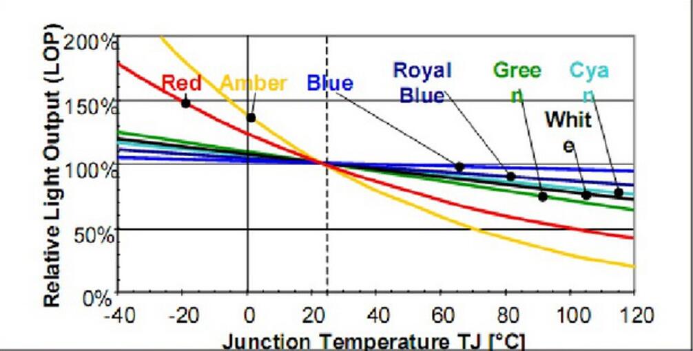 理論上LED總的光電轉(zhuǎn)換效率約是54%,由于材料、工藝,的缺失實際的轉(zhuǎn)換效率在30%左右。剩余能量主要以非輻射復(fù)合發(fā)生的點陣振動的形式轉(zhuǎn)化熱能,這就是LED熱源因素。鐵支架導(dǎo)熱不良,環(huán)氧樹酯黃化,芯片與支架接觸不夠緊密,芯片衰減大,如果是白光,還有熒光粉衰減的問題都會造成光衰。